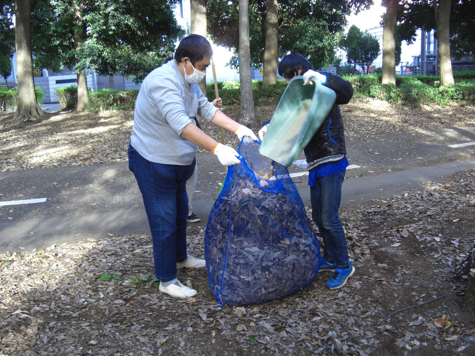 落ち葉を集めております!