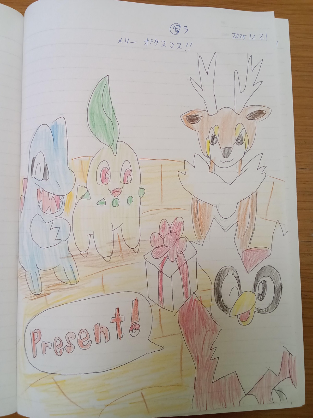 2枚目はポケモンの仲間達がクリスマス会を楽しんでいるイラストになっています!