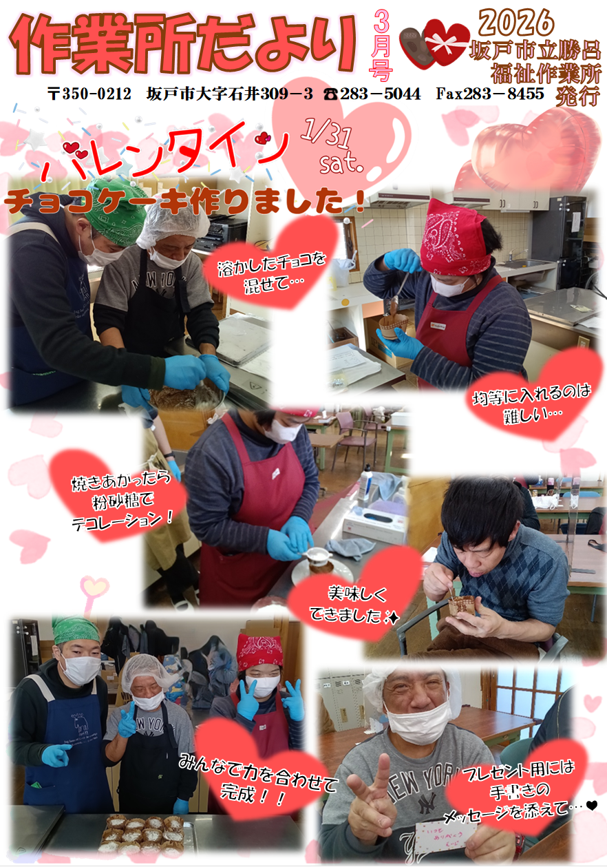 勝呂福祉作業所でもチョコレートケーキ作りを行いました。
