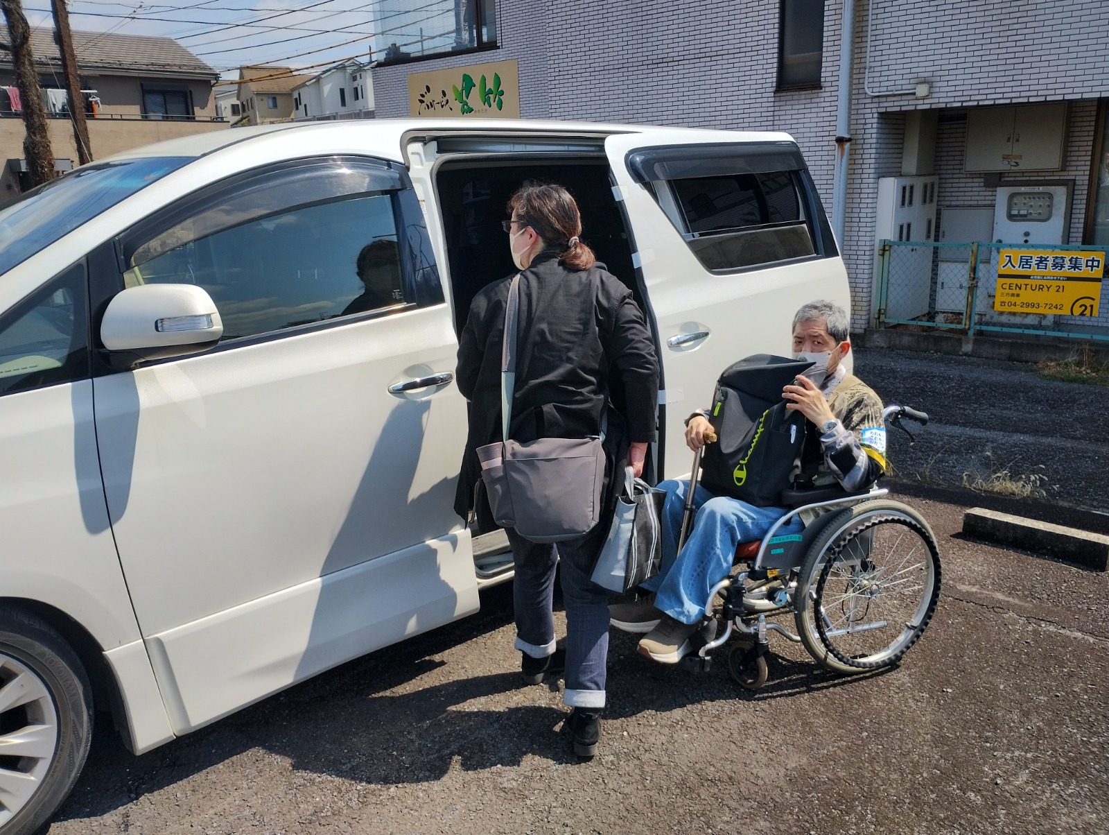 今回は車椅子で参加される利用者さんもいらっしゃったため、車椅子は事前に川越市役所からお借りしました。